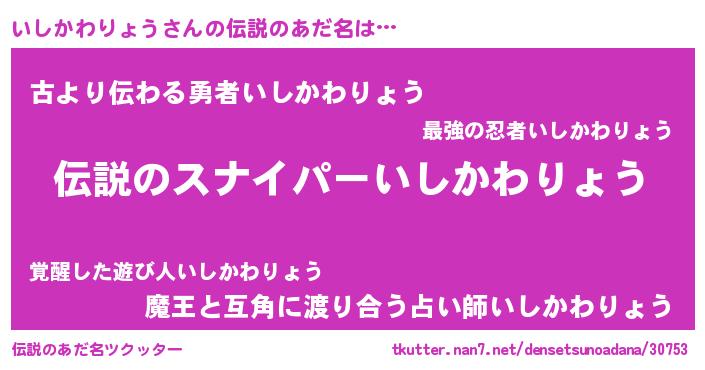 | ヒーロー風カッコイイあだ名 | 『スーパーイシカワリョウ』 |