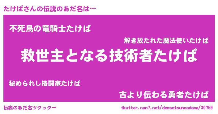 | 肩書あだ名 | 『たけば助教授』『たけばマネージャー』 |