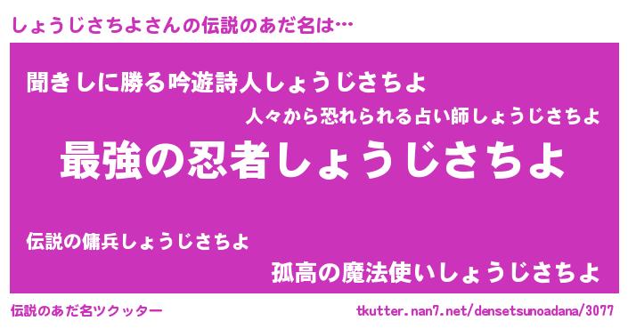 | 男性向けラノベタイトル風あだ名 | 『しょうじさちよ~年齢イコール彼女いない歴の魔法使い~』 |