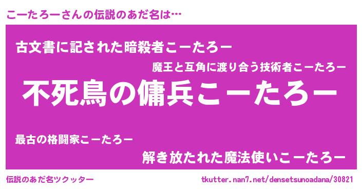 | ヒーロー風カッコイイあだ名 | 『スーパーコータロー』『ネオコータロー』 |