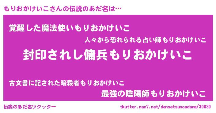 | 胡散臭い通販商品みたいなあだ名 | 『億万長者になれる水晶球…その名も「もりおかけいこ」』 |