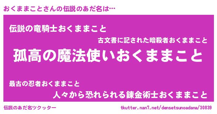 | 胡散臭い通販商品みたいなあだ名 | 『信頼と実績のサプリメント…その名も「おくままこと」』 |
