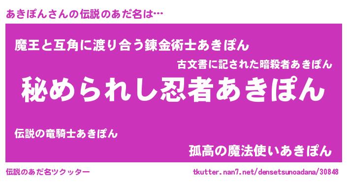 | ヒーロー風カッコイイあだ名 | 『ウルトラあきぽんマン』『仮面アキダー』 |