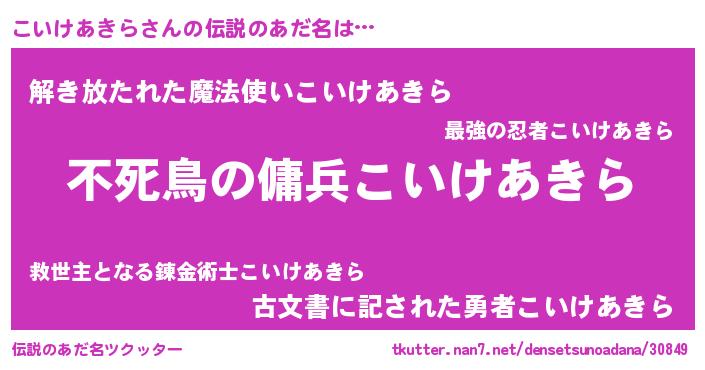 | ヒーロー風カッコイイあだ名 | 『スーパーコイケアキラ』『幻影騎士コイ』 |