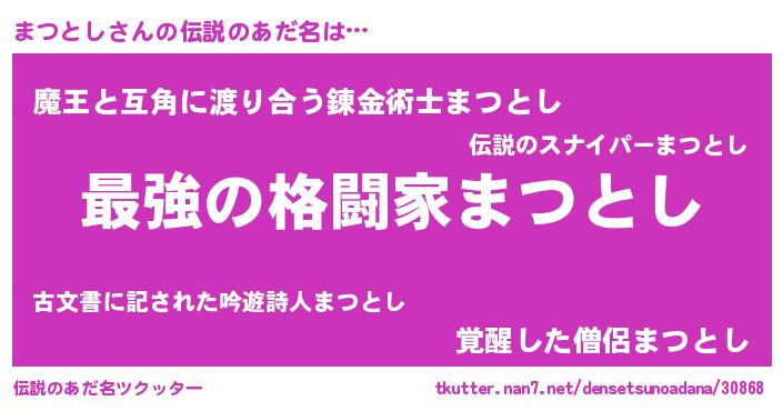 | ファンタジー風あだ名 | 『エターナルマツトシー』『クインマット』 |