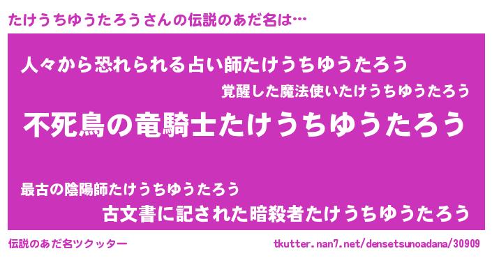 | 女子向けラノベタイトル風あだ名 | 『たけうちゆうたろう姫と円卓の騎士』 |