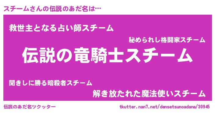 | ヒーロー風カッコイイあだ名 | 『スーパースチーム』『愛の使者スチーム』 |