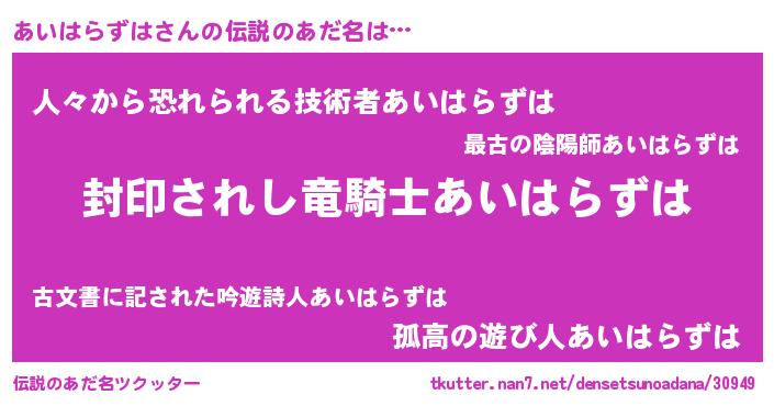 | ヒーロー風カッコイイあだ名 | 『スーパーアイハラズハ』『仮面アイダー』 |