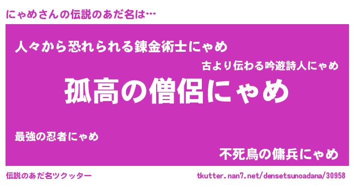 | 意味不明あだ名 | 『とにかく怪しいにゃめ』『自称にゃめ』 |
