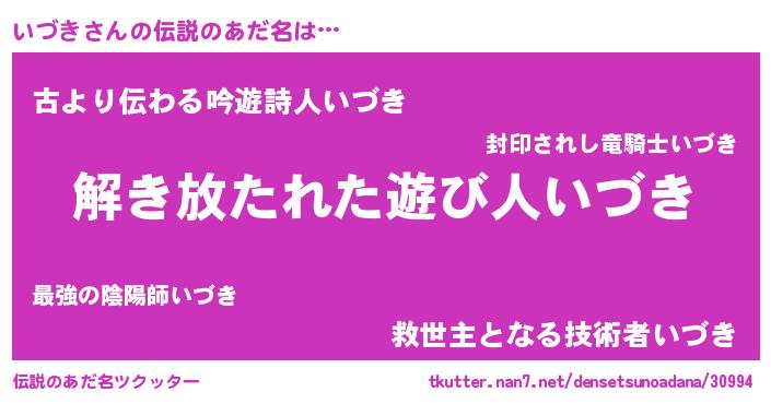 | ヒーロー風カッコイイあだ名 | 『サイバー戦士イヅキ』『銀牙騎士イヅ』 |