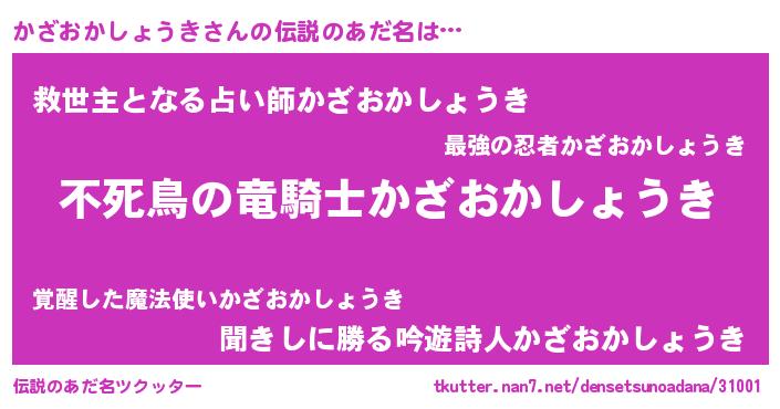 | 男性向けラノベタイトル風あだ名 | 『カザオカショウキアートオンライン』 |