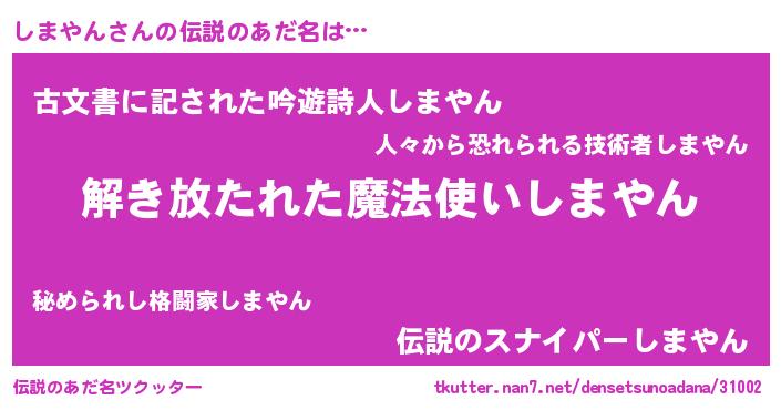 | ヘコむあだ名 | 『しまを』『しまやん(小並感)』 |
