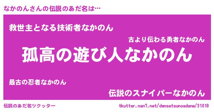 | ヒーロー風カッコイイあだ名 | 『魔戒騎士ナカ』『慈愛の使者なかのん』 |