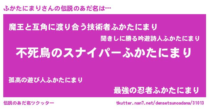 | ヒーロー風カッコイイあだ名 | 『スーパーフカタニマリ』『仮面フカダー』 |