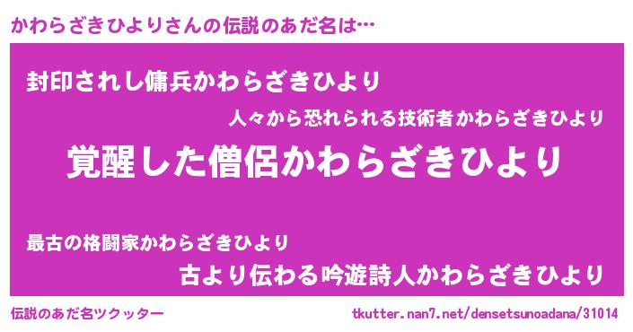| 意味不明あだ名 | 『とにかく怪しいかわらざきひより』 |