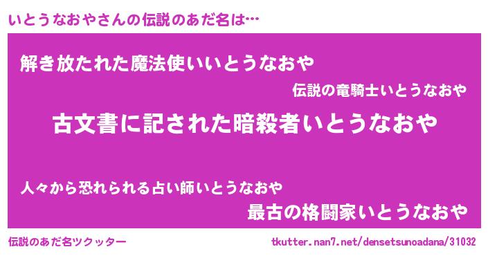 | ヒーロー風カッコイイあだ名 | 『ネオイトウナオヤ』『仮面イトダー』 |