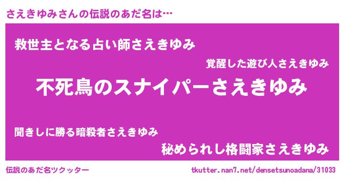 | 男性向けラノベタイトル風あだ名 | 『サエキユミアートオンライン』 |