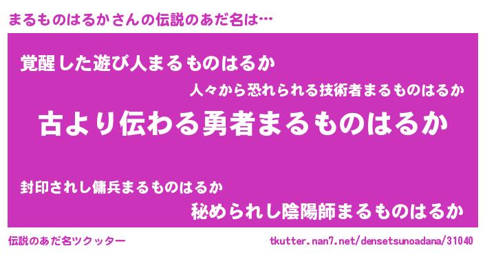 | 胡散臭い通販商品みたいなあだ名 | 『来世でも幸せになれる水素水…その名も「まるものはるか」』 |