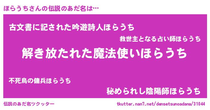 | 意味不明あだ名 | 『住所不定無職ほらうち(1歳)』 |