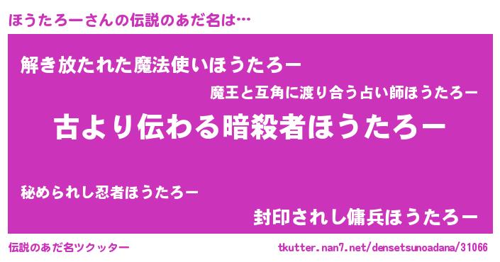 | ヘコむあだ名 | 『ほうたろー(爆)』『ほうを』 |