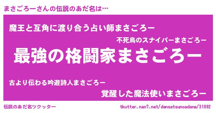 | 意味不明あだ名 | 『住所不定無職まさごろー(13歳)』 |