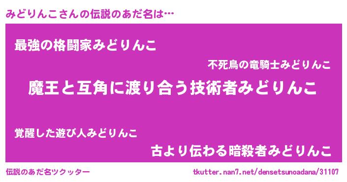 | ヒーロー風カッコイイあだ名 | 『愛の使者みどりんこ』『ネオミドリンコ』 |