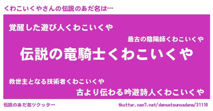 | 男性向けラノベタイトル風あだ名 | 『くわこいくやの憂鬱』 |
