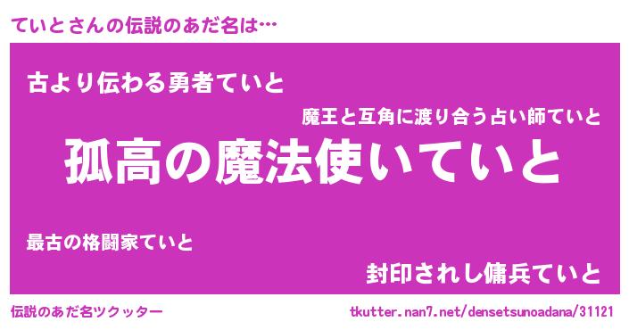 | 胡散臭い通販商品みたいなあだ名 | 『信頼と実績のサプリメント…その名も「ていと」』 |