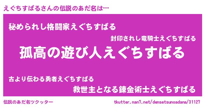 | ヒーロー風カッコイイあだ名 | 『暗黒騎士エグ』『仮面エグダー』 |