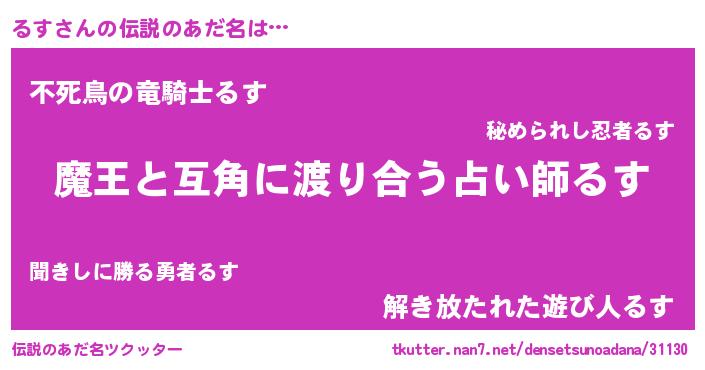 | ヒーロー風カッコイイあだ名 | 『仮面ルスダー』『正義の使者るす』 |