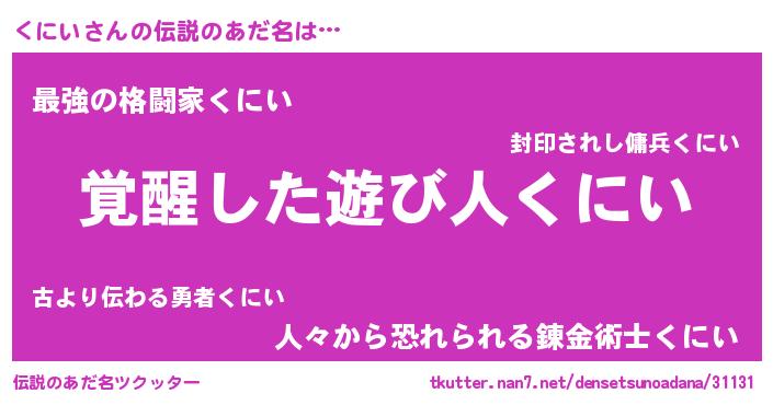 | 男性向けラノベタイトル風あだ名 | 『くにいの嫁は女の子じゃないと思った?』 |