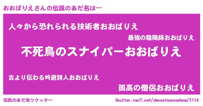 | 欧米人風あだ名 | 『ケンブリッジおおばりえ』 |