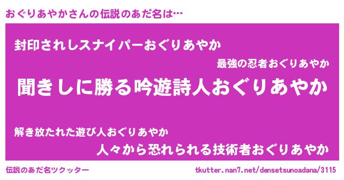 | 恥ずかしいあだ名 | 『おぐちん』『オグリアヤカデラックス』 |