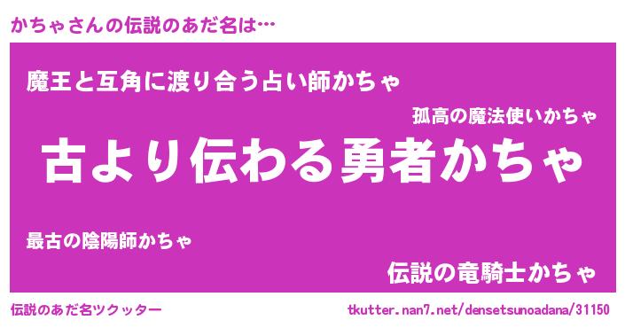 | ヒーロー風カッコイイあだ名 | 『ネオカチャ』『慈愛の使者かちゃ』 |