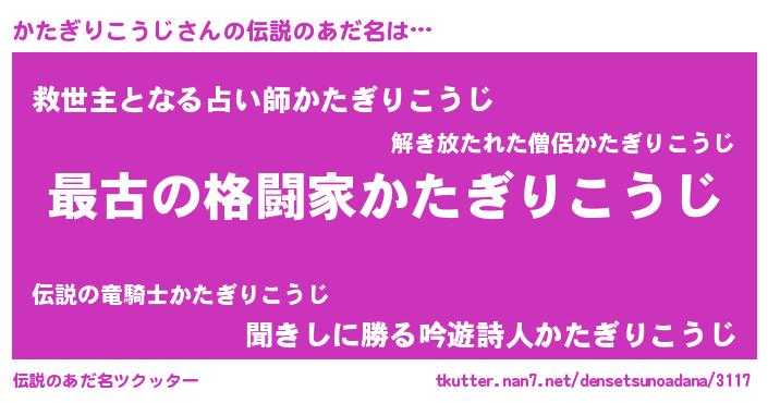 | 欧米人風あだ名 | 『かたぎりこうじクリステル』 |