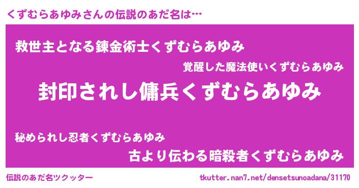 | ヒーロー風カッコイイあだ名 | 『スーパークズムラアユミ』 |