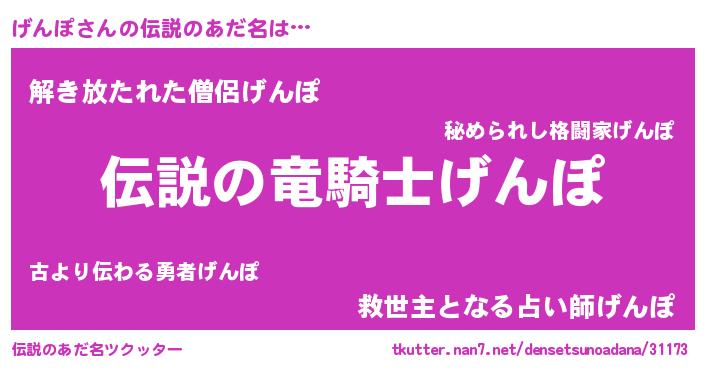 | ヒーロー風カッコイイあだ名 | 『スーパーゲンポ』『幻影騎士ゲン』 |