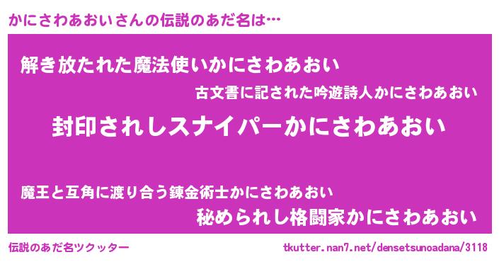 | 意味不明あだ名 | 『自称かにさわあおい』 |