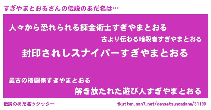 | 胡散臭い通販商品みたいなあだ名 | 『億万長者になれる霊験あらたかなお札…その名も「すぎやまとおる」』 |