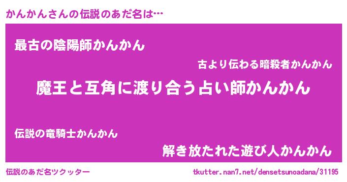 | 女子向けラノベタイトル風あだ名 | 『かんかん恋絵巻』『かんかん伯爵の花嫁』 |