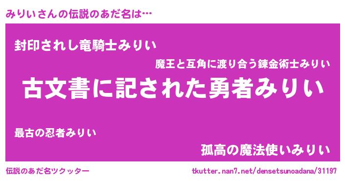 | 意味不明あだ名 | 『永久保存みりい』『ペロリンみりい』 |