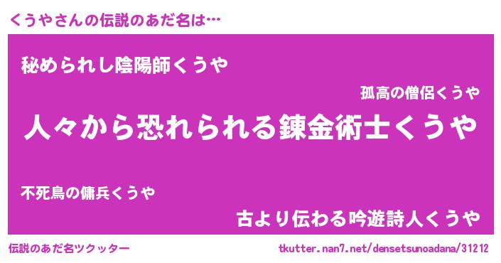 | 料理風あだ名 | 『くうやごはん』『くうやのトマト煮』 |
