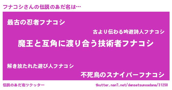 | ポケモン風あだ名 | 『フックウザ』『フナコダネ』 |