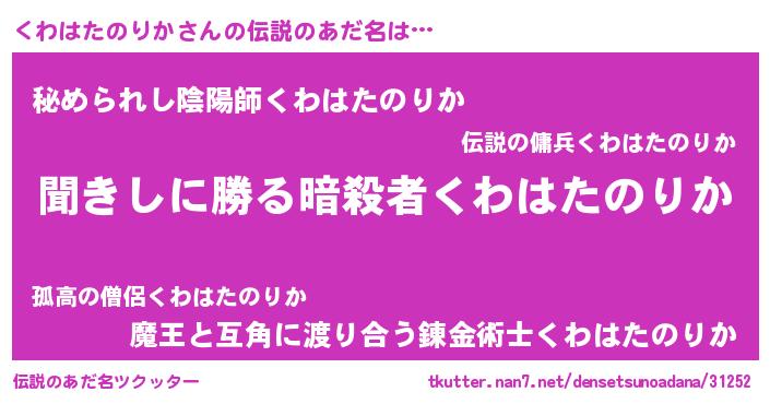 | 男性向けラノベタイトル風あだ名 | 『くわはたのりかという概念が存在しない退屈な世界 』 |