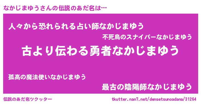 | 意味不明あだ名 | 『住所不定無職なかじまゆう(89歳)』 |