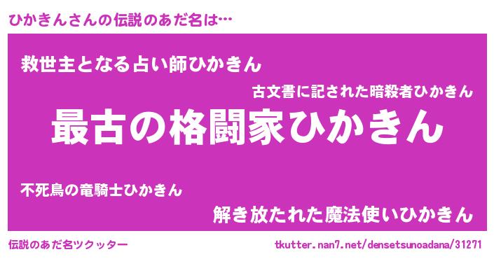 | ヒーロー風カッコイイあだ名 | 『ウルトラひかきんマン』『仮面ヒカダー』 |