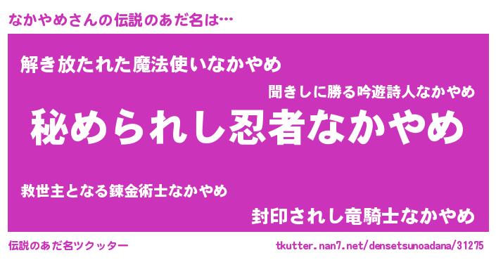 | 女子向けラノベタイトル風あだ名 | 『なかやめの雑貨屋さん』『闇のなかやめ』 |