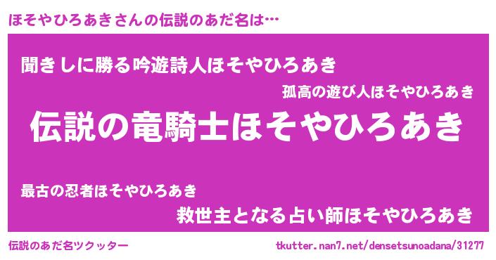 | 肩書あだ名 | 『ほそやひろあき閣下』 |
