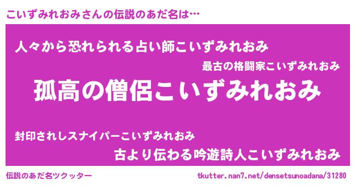 | 男性向けラノベタイトル風あだ名 | 『ダンジョンにこいずみれおみを求めるのは間違っているだろうか』 |