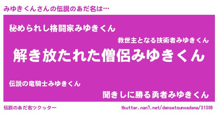| 意味不明あだ名 | 『住所不定無職みゆきくん(56歳)』 |